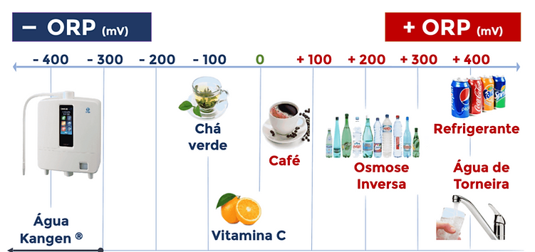 O ORP (Oxidation-Reduction Potential ou Potencial de Oxirredução) representa a capacidade que uma substância tem de oxidar ou de reduzir a oxidação. Essa medida é expressa em milivolts (mV). Quando o valor do ORP é positivo (+), indica que a substância é oxidante, ou seja, quanto maior a carga positiva, maior o seu poder de promover a oxidação. Quando o valor do ORP é negativo (-), a substância possui potencial antioxidante, sendo capaz de neutralizar os radicais livres, que são moléculas instáveis que estão associadas ao envelhecimento precoce. A Água Kangen possui um ORP médio de aproximadamente -700 mV, o que a torna altamente antioxidante. Isso se deve ao seu conteúdo de hidrogênio molecular ativo, um potente antioxidante natural que ajuda a reduzir os efeitos do estresse oxidativo, promovendo maior equilíbrio dos radicais livres. Com isso, a ingestão da Água Kangen pode contribuir para um estilo de vida mais saudável, apoiando processos naturais do corpo como a hidratação eficiente, a redução de toxinas e a proteção celular frente aos radicais livres.